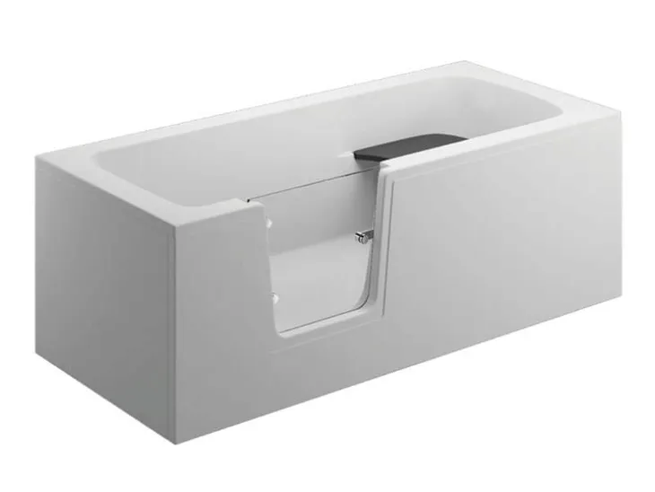 Szczelne boczne drzwiczki ułatwiają samodzielne korzystanie z wanny prostokątnej podczas kąpieli przez osoby starsze i niepełnosprawne.